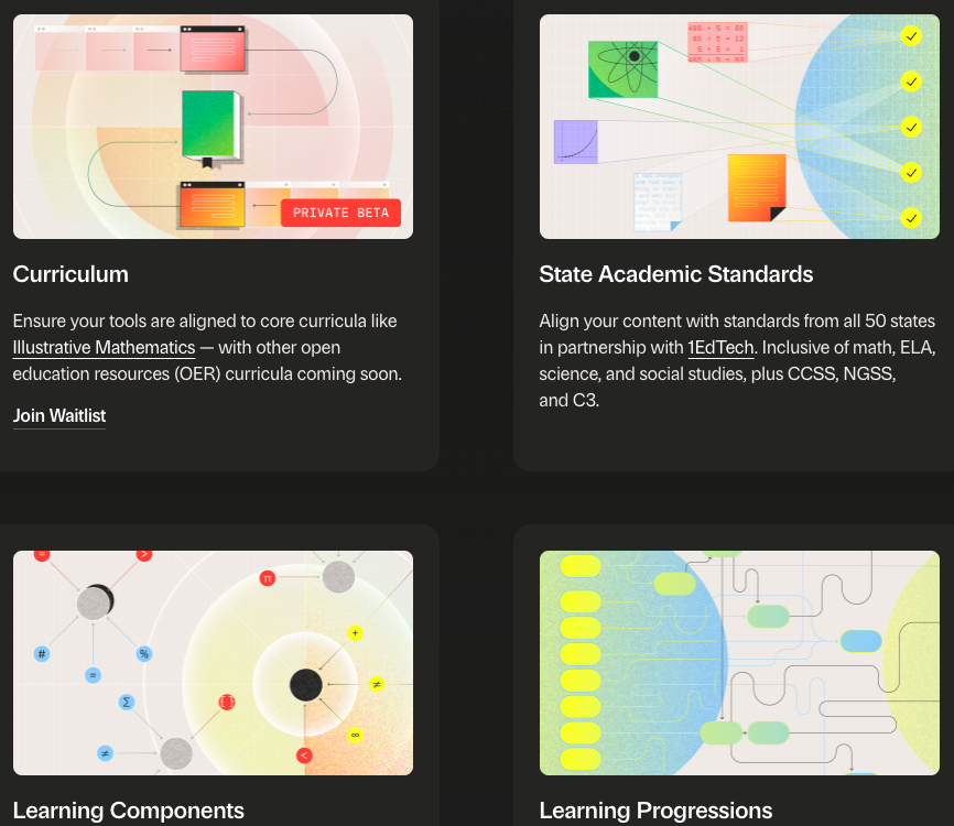 具體來(lái)看,Knowledge Graph目前涵蓋了全美50州四大核心學(xué)科——英語(yǔ)、數(shù)學(xué)、科學(xué)和社會(huì)科學(xué)(Social Studies)的學(xué)術(shù)標(biāo)準(zhǔn),能幫助教師更好地組織和管理教學(xué)內(nèi)容。
