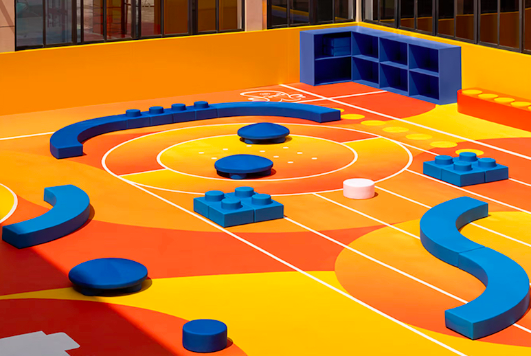 該運動場的設計靈感源于樂高“Build the Change”工作坊,它強調開放式互動,讓孩子們得以在課間休息時自發(fā)地進行體育游戲與協(xié)作。