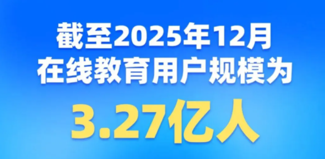 多知2月6日消息,近日,中國互聯(lián)網(wǎng)絡(luò)信息中心政策與國際合作所發(fā)布第57次《中國互聯(lián)網(wǎng)絡(luò)發(fā)展?fàn)顩r統(tǒng)計報告》。數(shù)據(jù)顯示,截至2025年12月,我國在線教育用戶規(guī)模已達(dá)3.27億人。越來越多優(yōu)質(zhì)課程通過國家智慧教育公共服務(wù)平臺跨越山海、時時可及。
